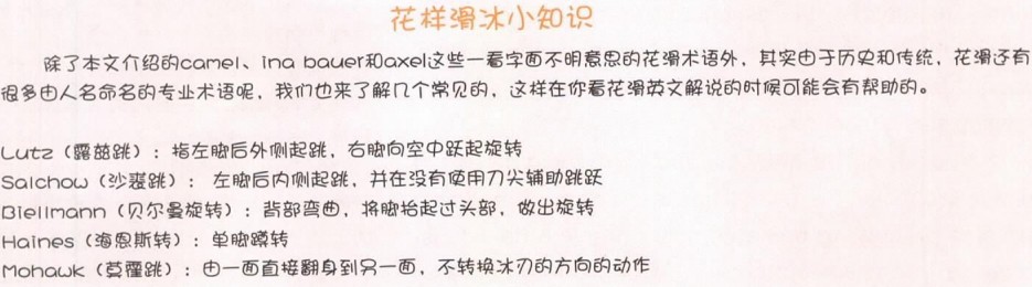 One of Kim’s signature moves is her bent-leg layover 5)camel spin, frequently called the Yu-Na spin. Her other signature move is a layback 6)ina bauer that she leads directly into a double 7)axel jump, to a double axel-triple8)toe loop jump combination or to a double axel-double toe loop-double loop jump combination.