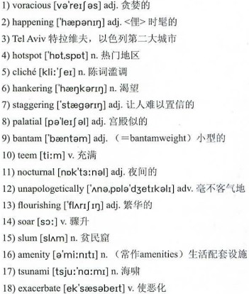 However, just as it was luring back travelers with cool new hotels, a 13)flourishing and contemporary art scene, and semi-endurable pollution levels, Mexico’s escalating crime due to over-population, increased housing shortages, and many other problems became front-page news. And Mexico City is not the only place struggling—in an urban age, things are going wild. Housing prices are 14)soaring with increased demand, so many urban poor are living in 15)slums where water and sanitation facilities are inadequate, and living conditions are crowded and unhealthy. They may be far from their sources of income and essential 16)amenities. In Asia and the Pacific, two out of five urban dwellers live in slums, compared with three out of five in Africa.