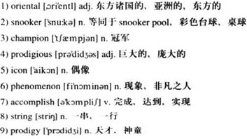 When Ding Junhui——“The Oriental Star”took to 2)snooker, he never expected himself to be a world 3)champion, a 4)prodigious millionaire, a national 5)icon and a 6)phenomenon.