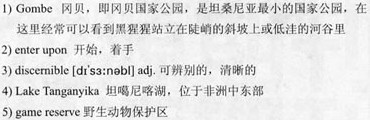 In 1968 the little game reserve underwent its own graduation, becoming 32)Tanzania’s Gombe National Park. By then Jane was receiving research funding from the 33)National Geographic Society. She was married and a mother and famous worldwide, owing in part to her articles for this magazine and her 34)comely, forceful presence in a televised film, Miss Goodall and the Wild Chimpanzees. She had institutionalized her field camp, in order to fund and 35)perpetuate it, as the Gombe Stream Research Center. In 1971 she published In the Shadow of Man, her account of the early Gombe studies and adventures, which became a best seller. Around the same time, she began hosting students and graduate researchers to help with chimp-data collection and other research at Gombe.