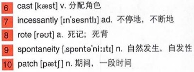 Stephanie: The last time I was on stage was in the third grade play. I was 6)cast as a rat. That’s not good for a third-grader’s self-esteem. So I went into Psychology. Go figure. But I married a comedian. He talks for a living. I listen for a living. I think he takes advantage of the situation. He talks 7)incessantly, and it’s all about himself. I think he might hold a record that I’m unaware of. If I open the Guinness Book, I would not be surprised to see his picture: “Joe Matarise, quickest redirection of a conversation back to oneself. One point three five seconds.” Unreal!