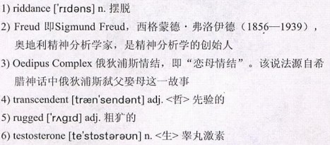 We’ve all heard people talk about chemistry, something hard to define as a key ingredient in the success of relationships. Evolutionary psychology has said good 1)riddance to 2)Freud and the 3)Oedipus Complex and all that other 4)transcendent stuff and hello to simple survival skills. It hypothesizes that we tend to see as attractive, and thereby choose as mates, people who look healthy. And health, say these evolutionary psychologists, is manifested in a woman with a 70 percent waist-to-hip ratio and men with 5)rugged features that suggest a strong supply of 6)testosterone in their blood. However, when it comes to love, the enduring topic, new theories always spring up. Some scientists did some research on that topic and found out that smell is an important part of attraction and a woman needs a good sense of smell to find a man who is just right for her.