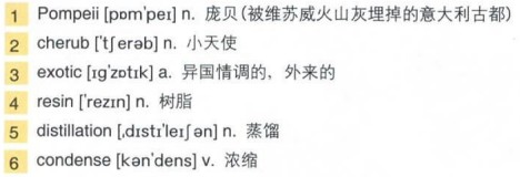 But then, in 870 AD, the world of perfume manufacture was revolutionised by an Arab invention—5)distillation. The steam 6)condenses into droplets that flow down a tube and are collected at the base, leaving pure rose oil floating on the surface of distilled water. It took 10,000 pounds of roses to produce just one pound of rose oil, and yet the Arab factories produced so much of it they were able to send an annual tribute of 30,000 bottles to the 7)Caliph of Baghdad. Rose oil is still used today as an 8)ingredient in over 75% of all perfumes.