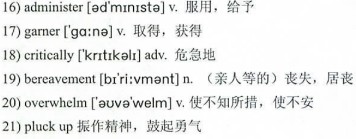 The aim of the study was to have a greater understanding of death and therefore benefit future patients. Knowledge 17)garnered from the study can make the last few weeks or days of a patient’s life more comfortable and ensure heightened awareness of the patient’s needs. It has also proved to be very helpful in counselling the relatives of patients who are 18)critically ill. In appropriate situations, it has been useful to mention the experiences that some people reported as it has had a very positive effect on the relatives, giving them great comfort. Accounts of NDEs have also been shown to be very helpful to people undergoing 19)bereavement.
