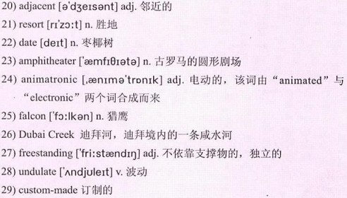 I admire Lutfi’s dedication to his short-but-demanding tower, and I’m also grateful to him for giving me as authentic an experience as it’s possible to have in Dubai: an off-road 32)jaunt around a major construction site. Lutfi 33)observes, “In Dubai, the roads and the buildings get built at the same time. Sometimes the buildings finish before the roads.” And Lutfi’s logic is obvious: “We are trying to build in 10 years what other people take 100 years to build.”