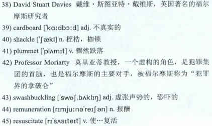 But less than a decade later—during which Conan Doyle wrote a series of 43)swashbuckling pirate stories and a novel, among other works, which were received with indifference—popular demand, and the promise of generous 44)remuneration, eventually persuaded him to 45)resuscitate the detective, first in the masterful novel 46)The Hound of the Baskervilles, which appeared in 1901, then in a 47)spate of less well-regarded stories that he continued writing until he died of a heart attack in 1930 at age 71. In addition to the Holmes stories, Conan Doyle had written some 60 works of nonfiction and fiction, including plays, poetry and such science-fiction classics as 48)The Lost World. “Conan Doyle never realized what he’d created in Sherlock Holmes,” says Davies. “What would he say today if he could see what he 49)spawned?”