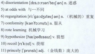 In Egypt, education is based on the concept of 8)rote learning, and creativity in the classroom is often discouraged. Students at Cairo University say they memorize and recite, never analyze and 9)hypothesize.