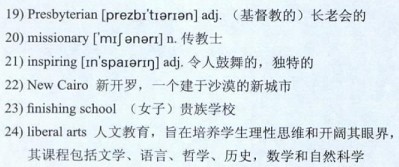 The university was founded in 1919 by a group of 19)Presbyterian 20)missionaries. Over the years it has grown, and now serves 5,000 undergraduates on an architecturally 21)inspiring, if geographically isolated, $400 million, 260-acre campus in a suburb called 22)New Cairo. The location redefined the university, just as the university was beginning to redefine itself as a first-rate university rather than a 23)finishing school for Egypt’s elite. But as the school has grown, so has a conflict within the university itself: can it change its mission while retaining its 24)liberal arts core and preserving classes like the Big Questions?