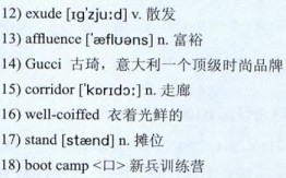 The campus 12)exudes 13)affluence. Students joke about the “14)Gucci 15)corridor,” a spot where 16)well-coiffed students gather each afternoon. There is no cafeteria, only expensive fast-food 17)stands.