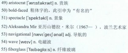 To some eyes, the 51)spectacle lends itself to satire—maybe even art. 52)Aleksandra Mir, who rents a fisherman’s cottage on Panarea every summer, recalled a favorite moment when she witnessed a yacht run into a pile of volcanic rocks. “It seemed to happen in slow motion,” she said, “as the high-tech 53)navigational gear on the boat was overtaken by the slow force of the 54)wave. Hearing and seeing white 55)fiberglass being crushed by the silent volcano was like experiencing the most masterful of sculptures.”
