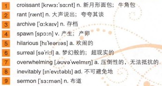 Neil: It’s been completely 6)surreal and7)overwhelming, you know. It’s...essentially it’s the reaction and the positive reaction of it that’s kind of kept me really, really charged up about it, because whenever I have a tough week, where I’m staying up late and I’m just sort of like, “I don’t know how long I can do this,” 8)inevitably I get an e-mail from, you know, a preacher saying, “I use this in my 9)sermons every Sunday. Thank you.”