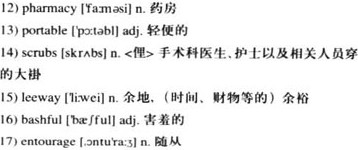 Not being in the medical field, my job was to be a run-around between all the doctors. Every half hour or so, I would freely open doors and check in with them. My 14)scrubs gave me the 15)leeway to be able to walk anywhere in the hospital. I also realized that my blond hair and blue eyes seemed to be an enjoyment for the people waiting in the hallways on the benches. Little children either stared or reached out to touch my hair. On the days that I took out my camera, children, who are never 16)bashful, would start jumping into the frame and end up leading an 17)entourage of people who wanted portraits taken. The mission was able to teach so much to so many people. Not only did the local people receive the care that we could provide, but also high school students came to help us translate and medical students and residents from both countries were able to practice medicine.
