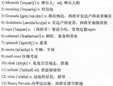 Either way it could well be the reason why 8)siestas are so quiet in Granada — everyone is home sleeping it off, or at least the foreign tourists, not used to this style of eating are resting. However, I’ve ceased to 9)mull over the origins of the tradition, and I am wondering how I can get off the stool and stagger outside.