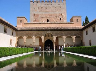Much has been written about the beauty of La Alhambra fortress, palace, 32)patios and gardens, and none of it is exaggerated. Its combination of Islamic art, architecture and gardening is visually stunning. La Alhambra is made up of the military fortress of 33)Alcazaba, the Royal Palace (home of the Alhambra Museum) and the gardens of 34)Generalife Palace.