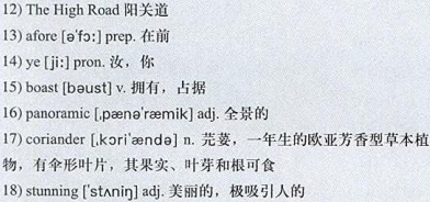 I’ll admit to shedding a tear or two, while my friend Ian, an outdoor enthusiast, found the majestic views filmed by helicopter over the loch far more impressive. The restaurant on the top floor of the tower 15)boasts 16)panoramic views, and we marveled at the sight, while spooning a hearty bowl of carrot and 17)coriander soup, to fortify us for the damp walk back to our hotel.