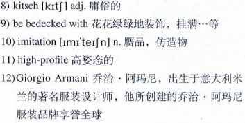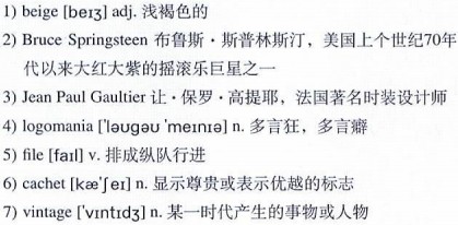 T-shirt fans scour stores in search of an old classic at the ends of the earth. Now produced in limited editions, sometimes even numbered like works of art, the T-shirt tends at times to forget its democratic origins to satisfy the whims of a handful of people forever seeking out something to give them a special 6)cachet. At a time when the craze for 7)vintage things has the ghosts of bygone fashion parading past us, for better or for worse, T-shirts are exhuming the dozing figures of 8)kitsch and pop culture and elevating them to iconic status. Whether tattered and torn, 9)bedecked with zippers and 10)imitation jewelry, or scribbled on with graffiti and slogans, the customized T-shirt now mixes ancient and modern, old and new, transforming it into that special, one-off article, sanctioned by fashion.