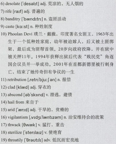 The gang’s challenge to the 29)throttling grip of male authority has brought new confidence—and dangers—to its members. I meet Radha, 40, the leader of the 30)ambush on the electricity office, walking with a friend in the market. “Before I joined the gang I was in 31)purdah and never went out of the house,” she says. “Now I’ve tackled ministers and officials and I’ve done away with my shyness—and the veil.” Others have been less fortunate. A few days before I arrive in Banda, one of the gang’s youngest members, a 14-year-old girl, had been attacked with a 32)sickle as she went for her morning 33)ablutions in the fields. She had put up a fight when a 16-year-old neighbour tried to rape her.