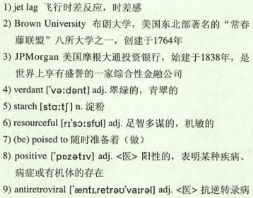 Emma Clippinger has recently gotten off a 24-hour flight from Africa, and she commands the stage of a Manhattan boardroom without the slightest sign of 1)jet lag. Clippinger, a junior at 2)Brown University, is delivering a PowerPoint presentation to a panel of executives at the investment banking firm 3)JPMorgan. On the screen behind her is a photograph of Rwanda, showing 4)verdant fields of bananas and corn. The scene may look healthy, but it’s not, the 22-year-old tells the executives. The banana and corn crops are so dominant in that nation that many Rwandans get too much 5)starch and not enough other nutrients. “This,” she says confidently, “is the picture we’re trying to change.”