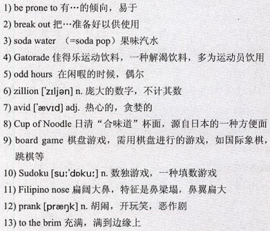I’ve been told that I talk to myself too much. I promise to make you laugh. My dad gave me a 11)Filipino nose and his passion for 12)pranks. If you find your car filled 13)to the brim with 14)Styrofoam peanuts, 15)forward all hate mail to him. He also gave me terrible eyesight. If I mistake you for a 16)bedpost, please don’t take it personally.