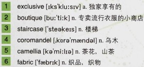These are very valuable 18th century pieces, Chinese 4)coromandel screens; very valuable. And Chanel, for her real luxury, she liked 5)camellias; she put it in her fashions, she put it in her buttons, she put it in a lot of places, this camellia.