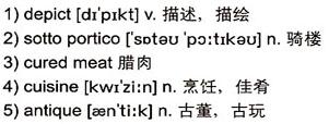 Stretching some 800 meters, Shangxiajiu is home to some 240 buildings. Built early in the last century, these buildings are called 2)sotto porticos, one of the most typical local styles of architectures[sic]. Shangxiajiu is filled with shops, department stores and various kinds of restaurants. There are old shops specializing in 3)cured meat, groceries and cookies, and modern restaurants with all kinds of traditional and Western-style 4)cuisine.