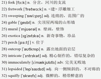 Here and there is the occasional temple, most memorably the tiny Wat Paa Huak, which has orange walls covered with stunning 25)murals depicting26)exotica such as white tigers. Looking down on the other temples is Wat Chom Si, which 27)perches on a rocky 28)outcrop next to the main street. Outside it, women sell birds in tiny pink-dyed bamboo birdcages; release a bird and your wish will come true. A couple of hours upriver are two more unusual temples, hidden in caves carved out of the cliffs by the Mekong millennia ago. In each are hundreds of gilded Buddhas of all different sizes, left by worshippers. Some are 29)intricate, 30)immaculately carved, big and grand. Others are31)lopsided, as small as a chess piece, or a thimble, and 32)squiffy-eyed, as if they have availed themselves of too much of the local 33)rice whisky. The higher of the two caves, a steep climb up 200 steps, is dark and at first seems empty. But with a torch, suddenly the Buddhas 34)transmogrify 35)en masse, a magical entity dazzling out of the darkness.