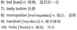 Lois: It was popular in North America as early as the mid-1800s. Although men 8)monopolized the game, women were there too, and they played 9)hardball just like the men. In 1866, the Vassar College “Resolutes,” a team of young ladies, 10)frolicked gracefully across the fields in their billowing dresses, and 30 years later women in New Brunswick challenged others to a game of ball. Even your great grandmother might have been a baseball player.