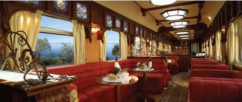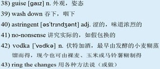 Food on board wasn't all about platform snacks. The train has two attractively decorated dining cars, one at the front and one at the rear, to which passengers are assigned on arrival. Meals, though, are not always a culinary highlight, consisting often of dense brown bread, pickled soups, cabbage, potatoes and meat in various 38)guises, 39)washed down with acidic wine and 40)astringent, 41)no-nonsense 42)vodka. To 43)ring the changes, some of us stock up on 44)caviar, cheese, smoked fish, fresh bread, honey, yogurt and dried fruits. Meals in the dining cars, however—while not always of 45)gourmet quality—are a social highlight of the journey. Particularly on the one full day spent traveling, when the dining room is the venue for Russian language lessons, history talks, extended card games and caviar and vodka tasting.