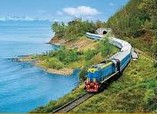 我从来没有想过,在穿越西伯利亚的火车之旅中,最初的几英里行程我居然会站在火车头上。我微笑着透过雨帘远眺贝加尔湖,湖面时而在阳光下闪闪发光,时而又因乌云密布而呈深蓝灰色。湖边成行的白杨树在微风中摇曳,西伯利亚玫瑰和红色的花楸浆果一闪而过,我们驶进了打断这一程风景的33号隧道,这是一条从湖边拔地而起的山崖上打通的隧道。我一边对着那一本正经的列车司机咧嘴傻笑,一边尽情呼吸着西伯利亚的清新空气。