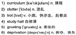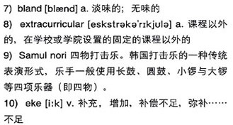 After classes, members of the 8)extracurricular 9)Samul nori Club pound away their stress with a traditional Korean percussion jam. Students here are happy to say they still 10)eke out time for hobbies and community service. And Eric Cho points out that while making out in the hallways would not be appropriate, there’s no ban on students dating each other.