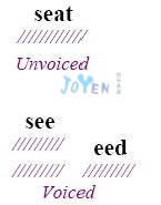 When you have a word ending in an unvoiced consonant—one that you "whisper" (t, k, s, x, f, sh)—you will notice that the preceding vowel is said quite quickly, and on a single stairstep. When a word ends in a vowel or a voiced consonant—one that you "say" (b, d, g, z, v, zh, j), the preceding vowel is said more slowly, and on a double stairstep.