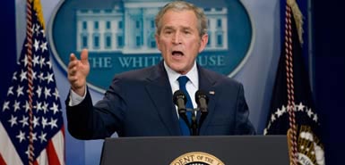 This evening, my thoughts return to the first night I addressed you from this house — September the 11th, 2001. That morning, terrorists took nearly 3,000 lives in the worst attack on America since Pearl Harbor. I remember standing in the rubble of the World Trade Center three days later, surrounded by rescuers who had been working around the clock. I remember talking to brave souls who charged through smoke-filled corridors at the Pentagon, and to husbands and wives whose loved ones became heroes aboard Flight 93. I remember Arlene Howard, who gave me her fallen son's police shield as a reminder of all that was lost. And I still carry his badge.