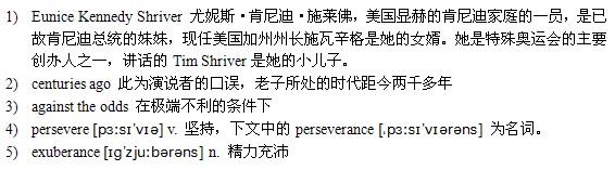 这是一篇充满激情的演讲。时间不长,却让人热血沸腾。演讲者借用东道国的一句古话,既表达了对主办国的谢意,也赞扬了特奥会的主角——运动员。在讲话中,演讲者激情澎湃,自始至终语调激昂,让人不由得兴奋起来。这篇赛前动员令是鼓舞士气的典范。