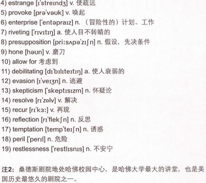 你一上政治课就想打瞌睡吗,或者一听见“哲学”两个字就会眼前发黑?其实哲学并不一定就是沉闷难懂的天书,思想道德课也可以引人入胜——法学教授迈克尔·桑德尔的“公正:该如何做是好?”(“Justice: What’s the Right Thing to Do?”)就是最受哈佛新生欢迎的公开课。他通过生动有趣的举例引发学生思考现实问题,其视频在各大网站创下超高点击率。本文节选自第一堂课的结语部分,词汇不难,语速和缓,但长句较多,句型复杂,在理解上有一定难度。建议大家掌握好生词后通读全文,先熟悉内容,再听原声进行跟读模仿。另外,这篇文章条理分明,论述环环相扣,学有余力的同学不妨背诵下来,学习其中的写作技巧。