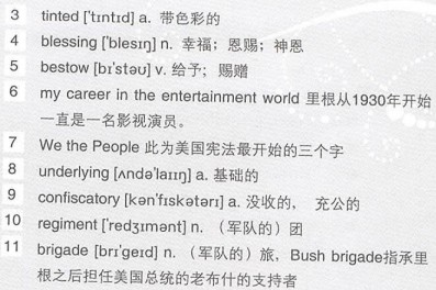 I never meant to go into politics. It wasn’t my intention when I was young. But I was raised to believe you had to pay your way for the 4)blessings 5)bestowed on you. I was happy with 6)my career in the entertainment world, but I ultimately went into politics because I wanted to protect something precious.