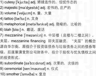 Edward: Never too late. What do you think happens now? I go back and sit around listening to people talking about 7)mezzanine financing and 8)subordinated debt pretending that I care about dead money. You go home to some 9)ceremonial procession into death with everyone standing around watching you die while you try to comfort them. Is that what you want, to be 10)smothered by pity and grief? Well, not me. And in your heart, Carter, I believe not you either. ⑦We’re both in the same boat. How’s that for a metaphor? We got a real opportunity here.