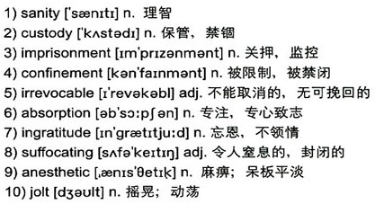 Virginia: If I were thinking clearly, Leonard, I would tell you that I wrestle alone in the dark, in the deep dark, and that only I can know, only I can understand my own condition. You live with the threat...you tell me you live with the threat of my extinction. Leonard, I live with it, too. This is my right. It is the right of every human being. I choose not the 8)suffocating 9)anesthetic of the suburbs, but the violent 10)jolt of the capital. That is my choice. I wish, for your sake, Leonard, I could be happy in this quietness. But if it is a choice between Richmond and death, I choose death. You can not find peace by avoiding life, Leonard.