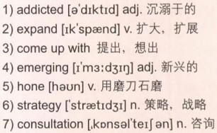 ④ He’s come up with this list of all these emerging markets and is thinking up all sorts of new products for us to hone in on. 他做了一份新兴产业的清单,正考虑着进军各种各样的新产品呢。