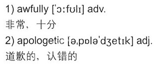 Mother: So, of course, I tripped on the shoes and fell forward and he rode right over my legs. Letters went flying into the air, I was screaming and abusing him. ③In his defense, he was 1)awfully 2)apologetic.