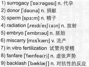 Tips: 代孕产子虽然越来越流行,但毕竟费用不菲,并不是所有人都承担得起。对于那些富得流油(be loaded)的人来说,代孕自然是选择之一,但对于那些钱根紧缩、日子过得紧巴巴(be strapped for cash)的人而言,恐怕还得另找出路了。