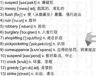 5)Robbery, 6)burglary, 7)shoplifting, 8)pickpocketing…②The good news is that the majority of them get their 9)comeuppance.
