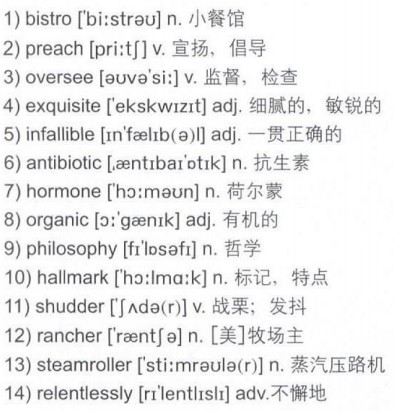 Alice Waters was only 27 years old in 1971 when she opened her French 1)bistro Chez Panisse[注2] in Berkeley, California, today considered one of the finest restaurants not just in the United States but in the world. Waters has produced eight cookbooks, but she’s more famous as the mother of a movement that 2)preaches about fresh food grown in a way that’s good for the environment. The movement, now called “slow food”, is a healthy alternative to “fast food”.
