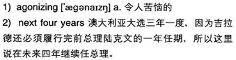 Australia’s 1)agonizing wait for a new government is finally over. Independent Members of Parliament have announced their support for Prime Minister Julia Gillard, who will hold the post for the 2)next four years.