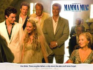 不难看出,虽然Sam、Harry和Bill都曾经和Donna有过一段情,但真正令Donna刻骨铭心的是Sam。当年Donna以为Sam选择离开自己、回去找未婚妻,遗憾地错过了这段情缘。如今误会终于消除,等待我们的自然是大团圆结局:两人重新走到了一起,原本Sophie的婚礼现在变成了Donna和Sam的婚礼。Sophie因为“生父事件”意识到了自己真正想要的是什么,于是选择尊重未婚夫的意愿,两人先去环游世界,以后再结婚。同时,Sam、Harry和Bill共同成为Sophie的父亲。至于到底谁才是生父,大家都没有再追究下去,因为Sophie从此可以得到三份父爱,何乐而不为呢?