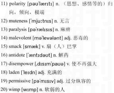 Many people are still convinced that 15)smacking or shaming is the only 16)antidote for preventing antisocial behaviors in children. The suggestion of giving up shaming or smacking is misinterpreted by some as an attempt to 17)disempower parents, to turn them into guilt-18)laden, ineffectual and 19)permissive 20)wimps. Not so. Effective and healthy boundaries can be set without resorting to violence or shaming. Being strong with children does not mean being harsh or humiliating.