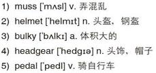 Bicyclists who don't want to 1)muss up their hair with a 2)helmet or simply dislike the 3)bulky 4)headgear may soon have another option for safety as they5)pedal around town.