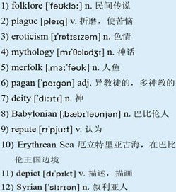 The 8)Babylonians were known to worship a sea-god called Oannes, or Ea. Oannes was 9)reputed to have risen from the 10)Erythrean Sea and taught to man the arts and sciences. In the Louvre today can be seen an eighth century wall-scene 11)depicting Oannes as a merman, with a fish-like tail and the upper-body of a man.