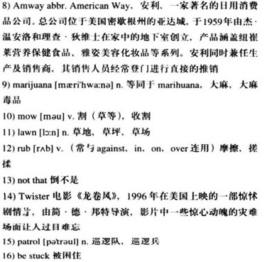 13) Not that I was not concerned about the tornado. I remembered the movie 14) Twister and those flying cows. If a tornado could carry a cow up in the air, imagine what it would do with me. What if it carried me all the way to Mexico? And what if the border 15) patrol, seeing my brown skin, didn’t let me return? I’d 16) be stuck in Mexico with no 17) American Express and, even worse, no 18) visa.