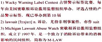 密歇根诉讼滥用监察组织的主席罗伯特•B•多里哥•琼斯说,古怪警示标签比赛的优胜者由该组织从150条被提名的警示标签中选出。